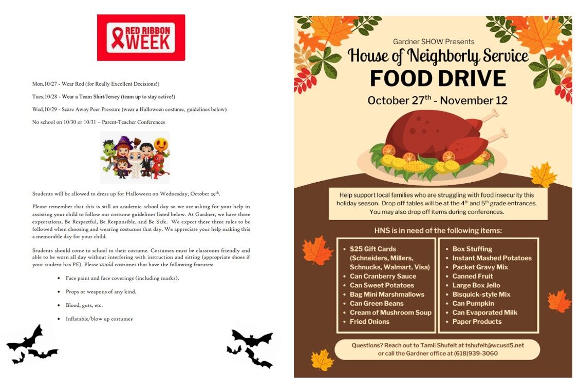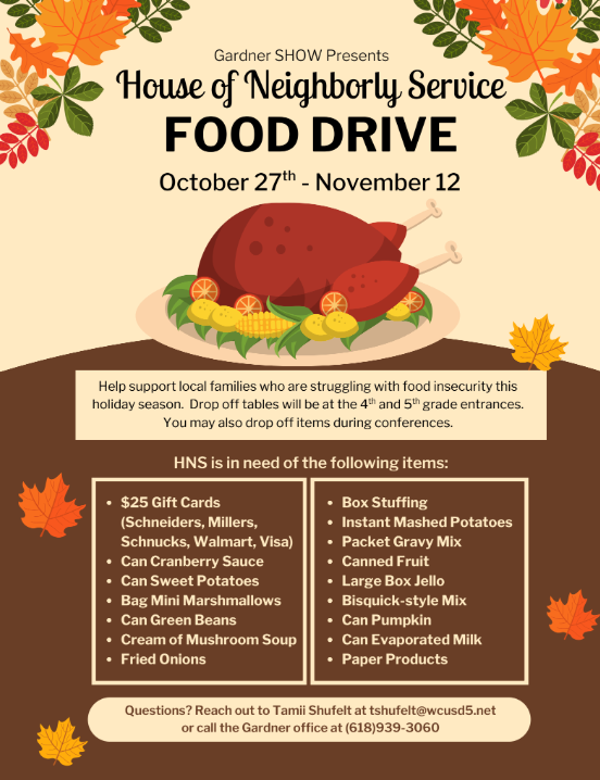 Monday is the beginning of our food drive. Parent teacher conferences